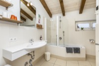 - Bad inkl. Begehbarer ebenerdiger Dusche, WC & Föhn