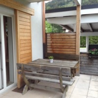 - Modernes, großzügiges in hellem Massivholz gehaltenem Appartement, Schlafräumen mit Lärchenholz-Boden, Wohlfühl-Fußbodenheizung. Mit überdachter Süd-Terrasse und Garten.